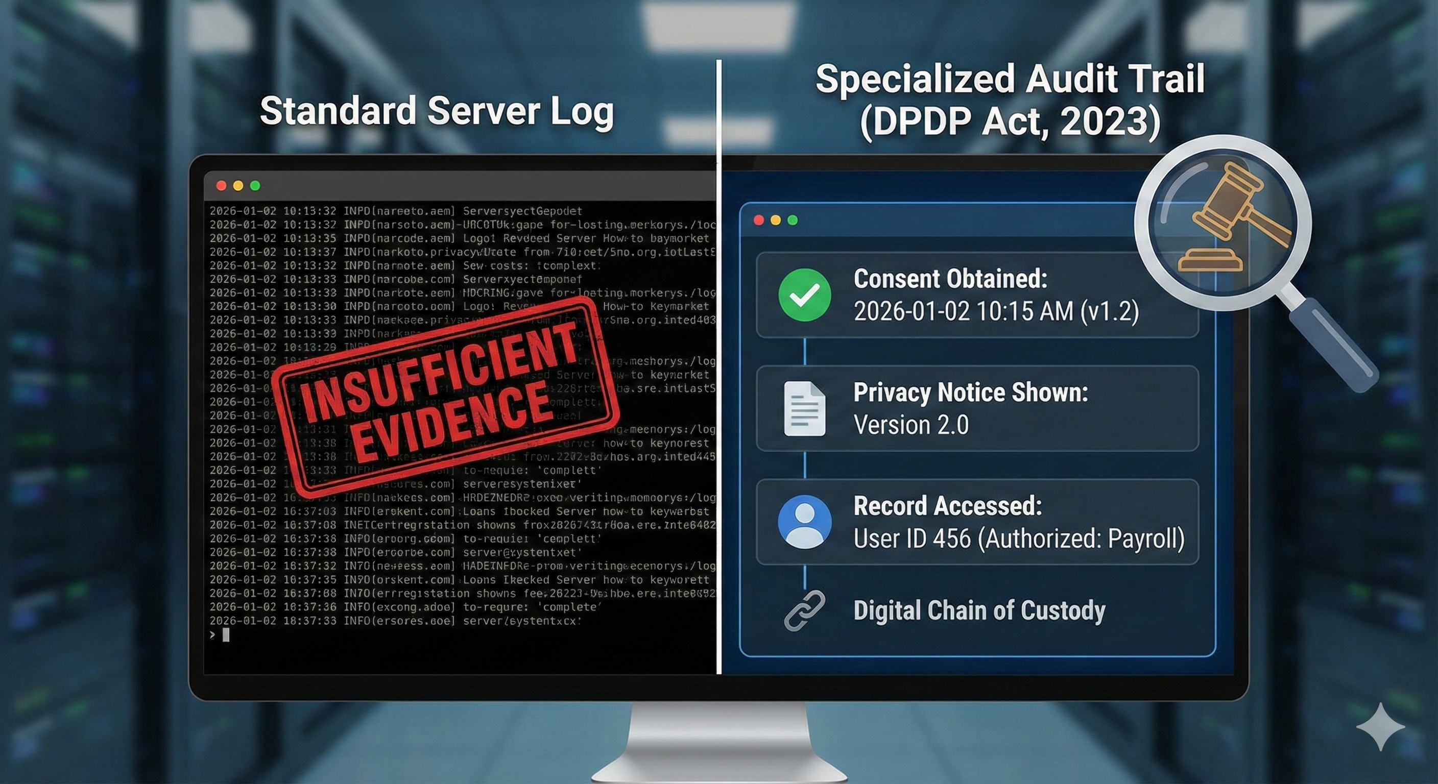 A standard server log is often insufficient. Compliance requires a specialized Audit Trail that legally validates specific